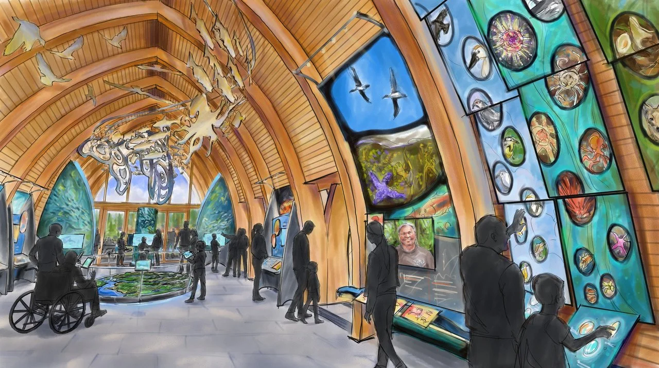 To build an empowered community dedicated to maintaining and enhancing the rich biodiversity of our coastal waters for generations to come. A Net-Zero state-of-the-art facility inspiring innovative solutions and connecting its visitors to the natural world through science, culture, and the arts.